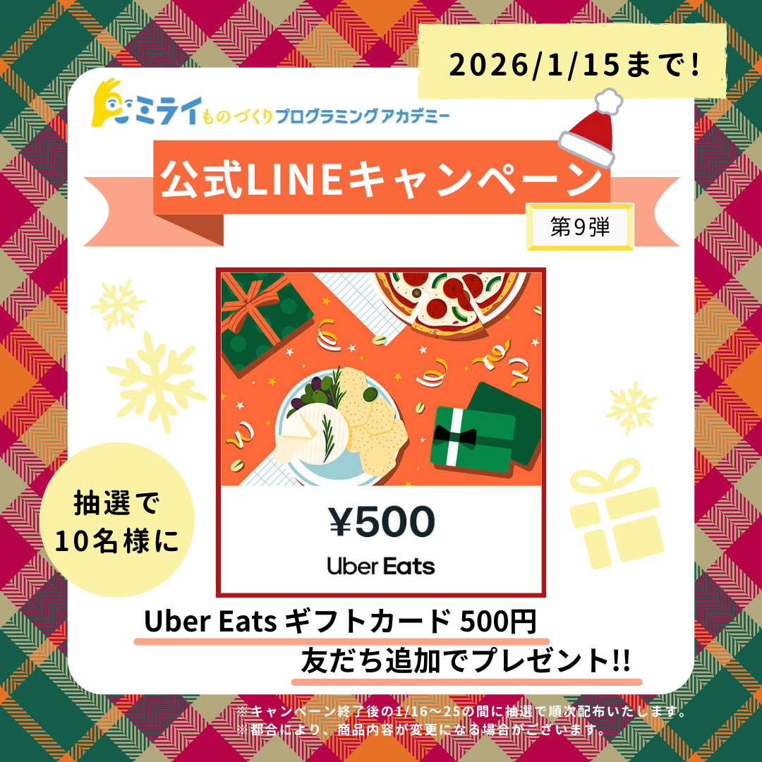 当選された方には「ミライものづくりプログラミングアカデミー LINE公式アカウント(@148yfdsw)」上でご連絡いたします。 友だち登録を継続したままお待ちください。